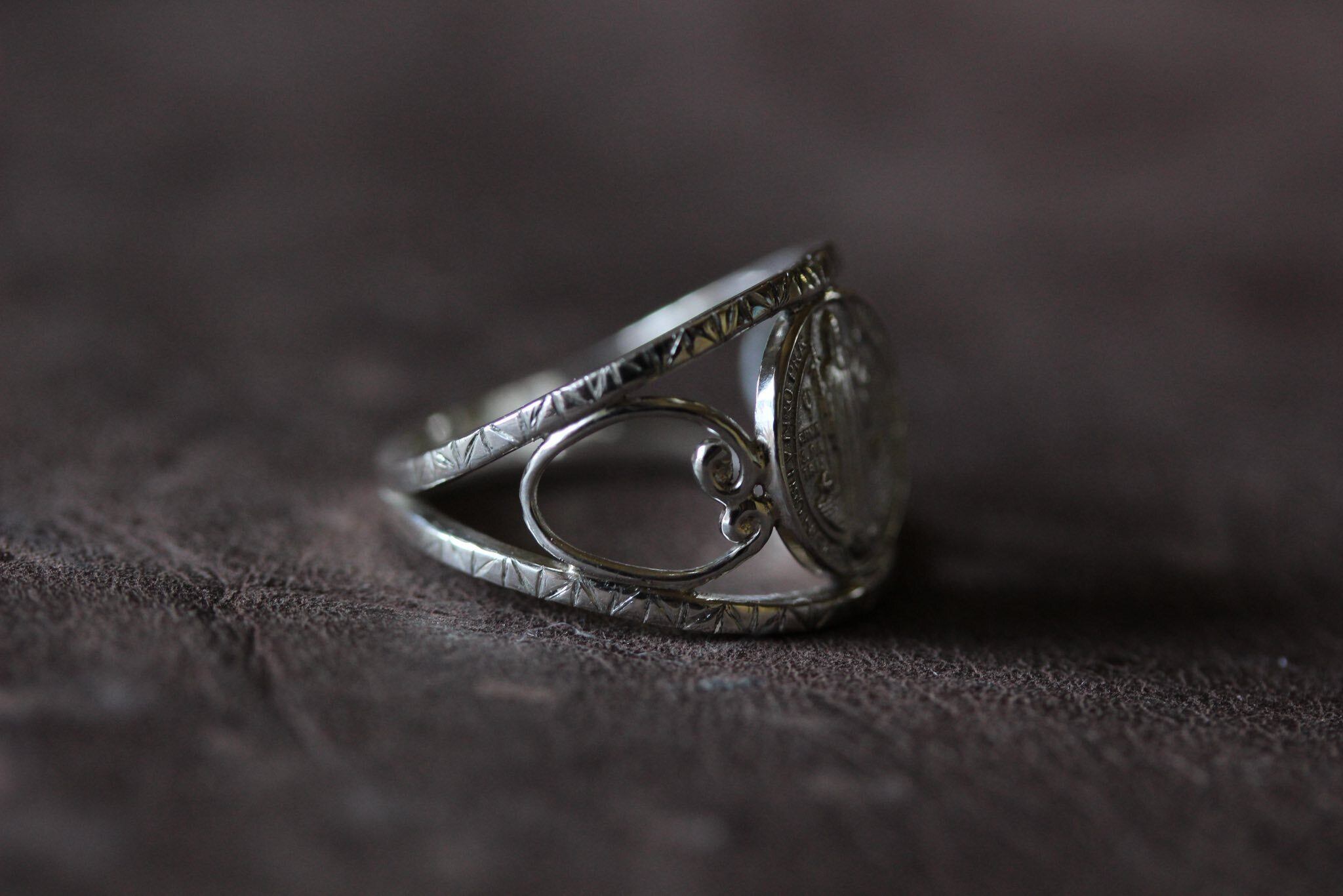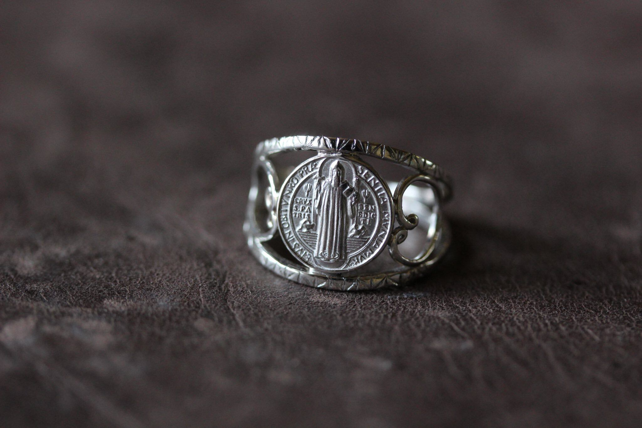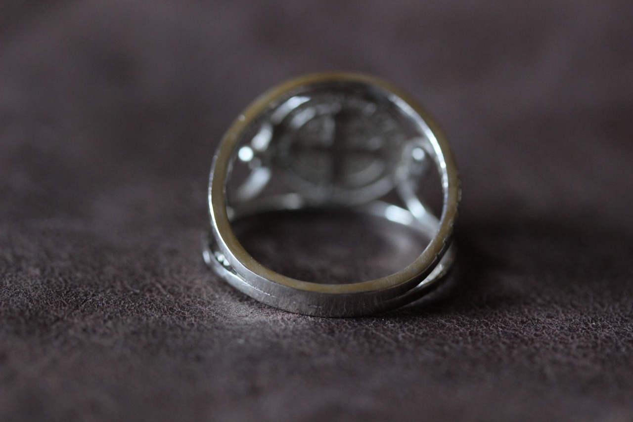 イタリアの修道士、聖ベネディクトのメダイ(シルバー製)を使ったリングです。