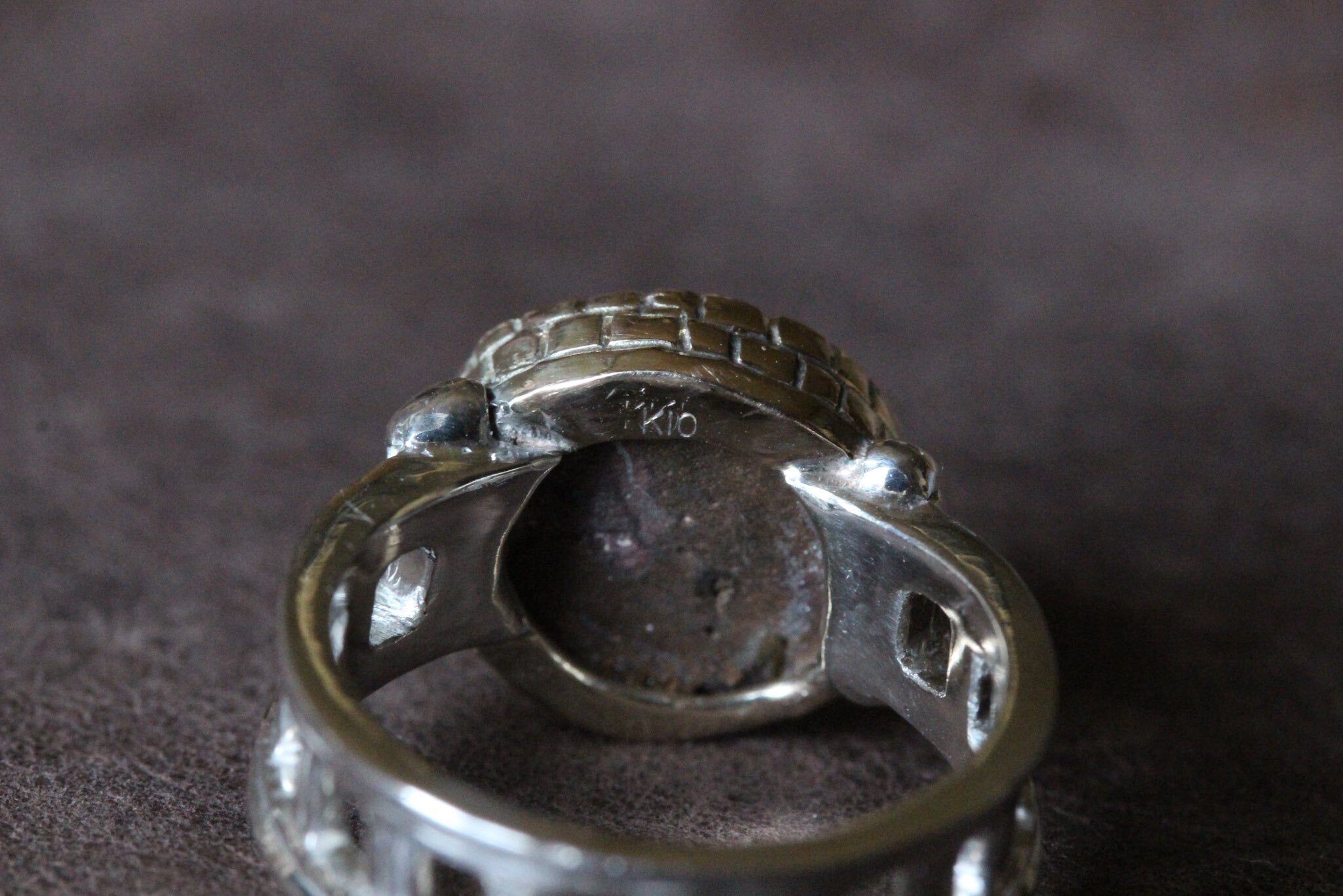 オパールの石枠はオパールの輝きを際立たせるK10でレンガ造りのようなデザインに、