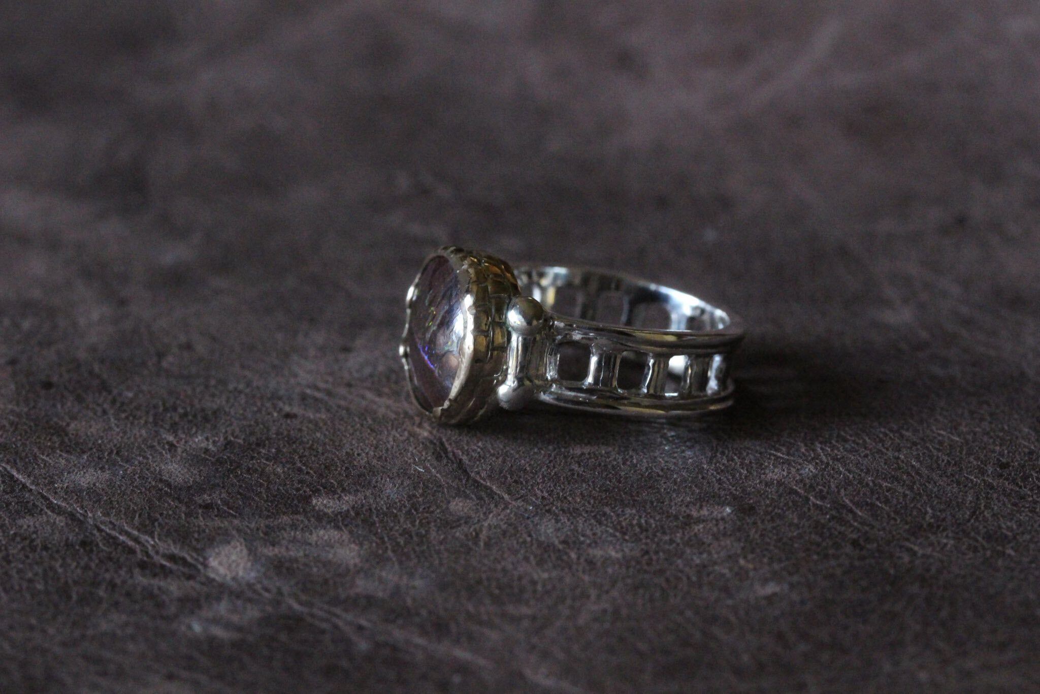 リングのアーム部分はシルバー925で回廊をイメージして制作しました。