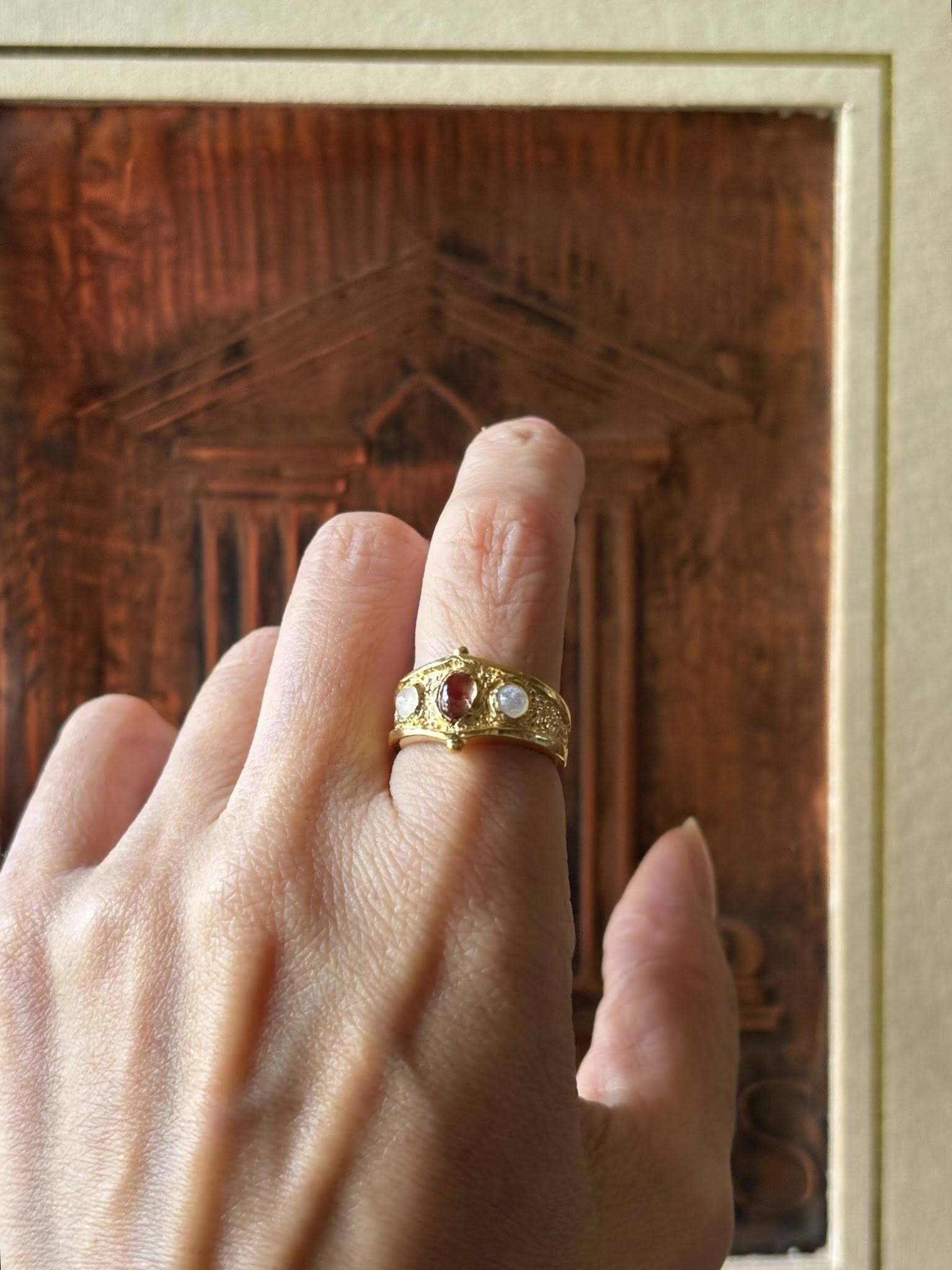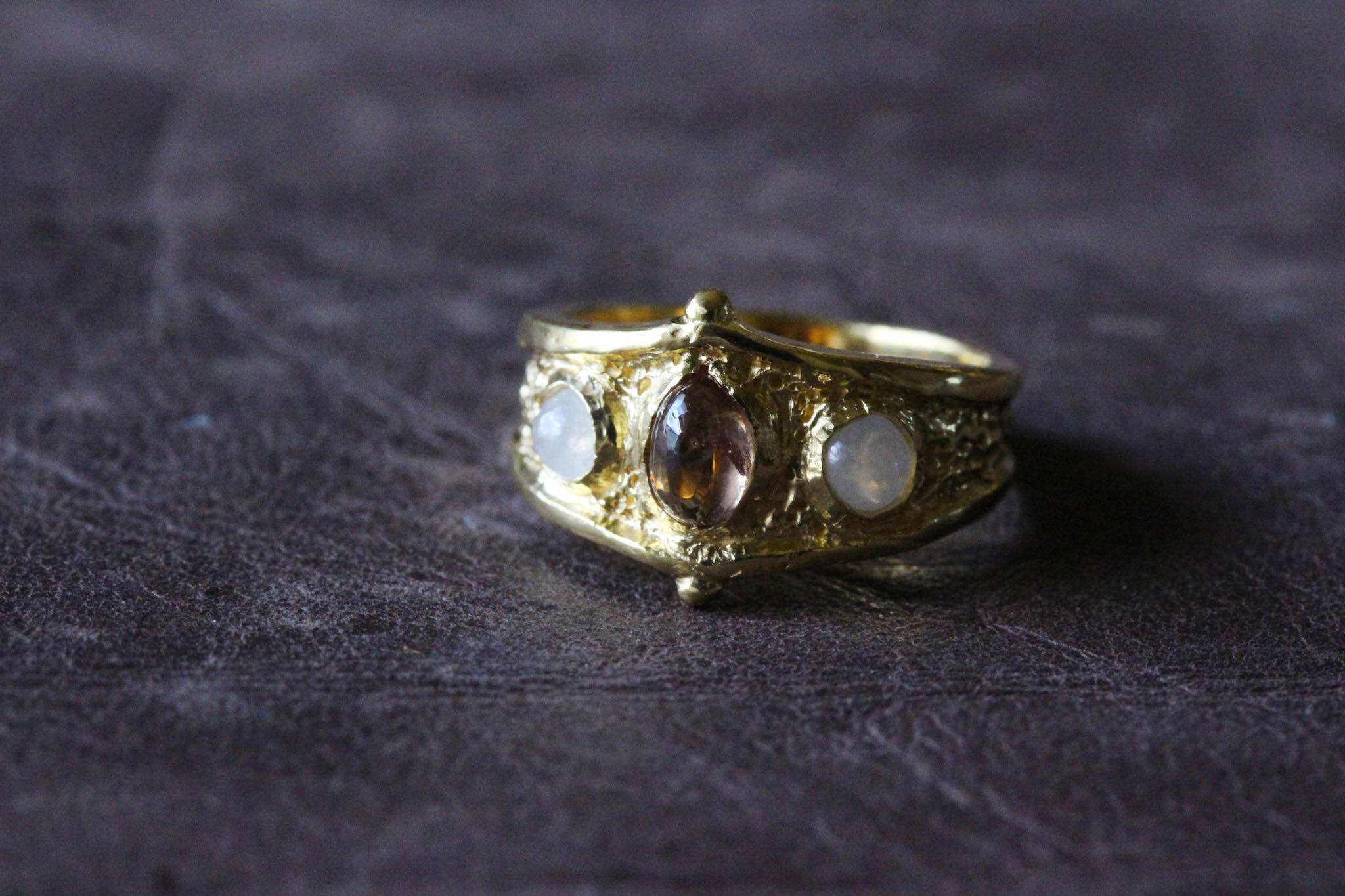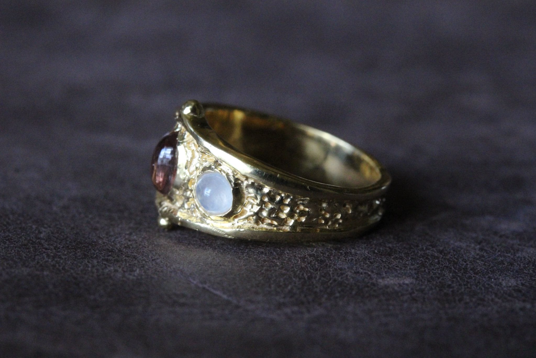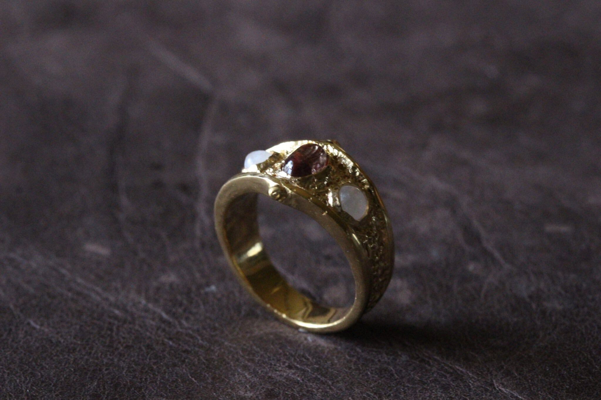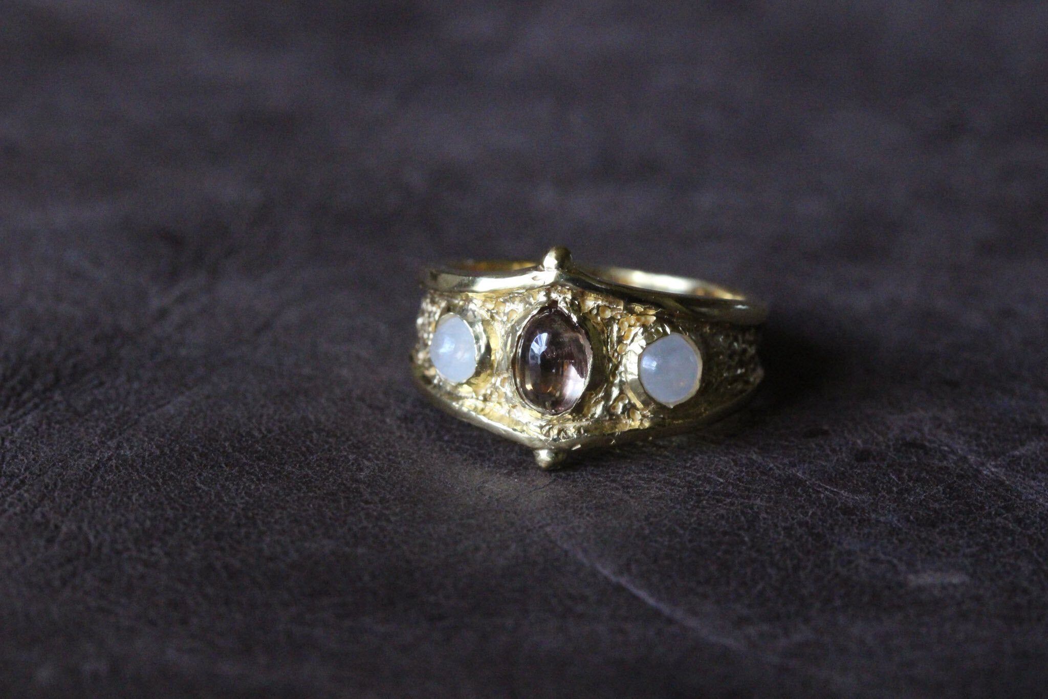 真ん中にスリランカ産のアンダリュサイトを、両サイドには氷翡翠を配置して