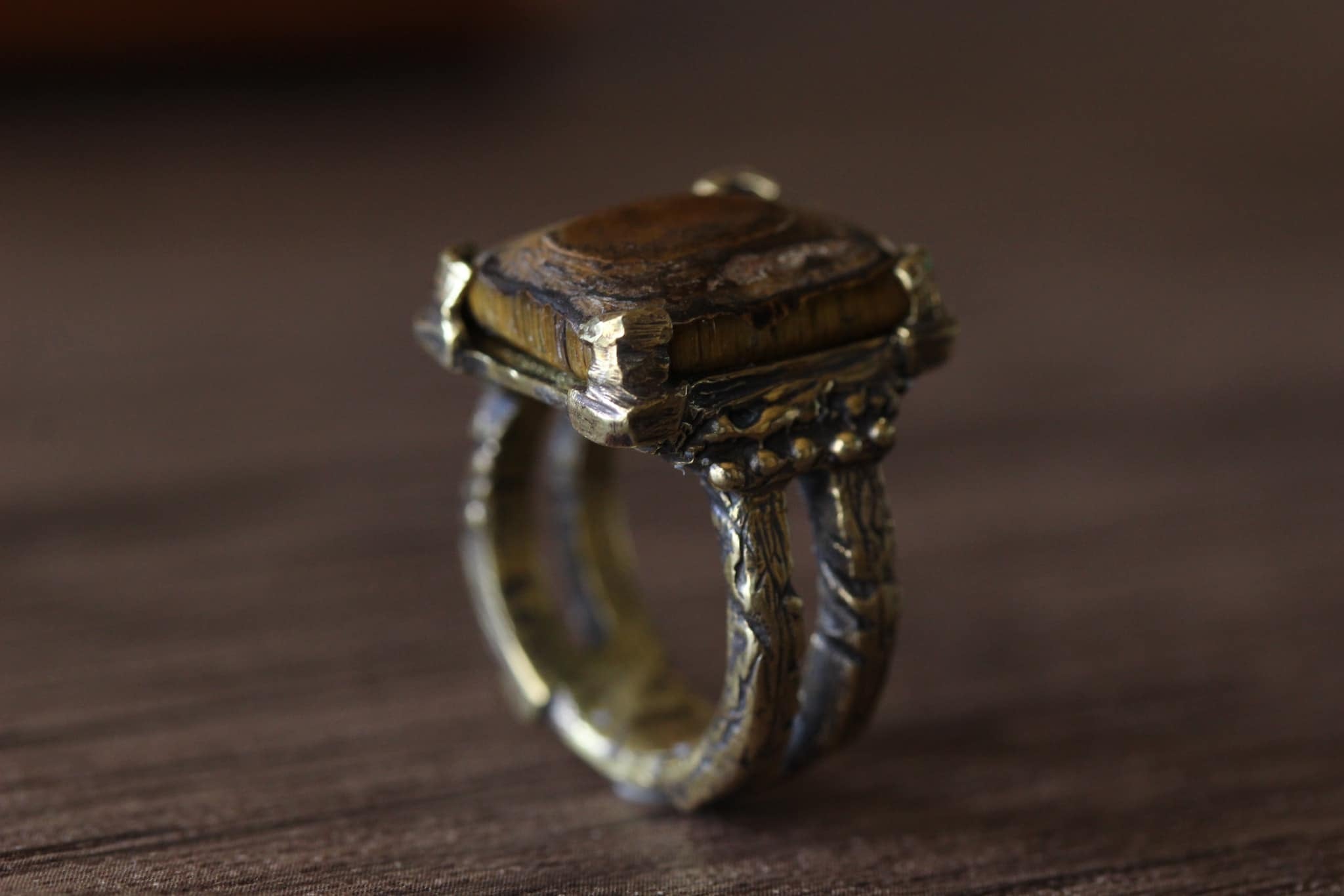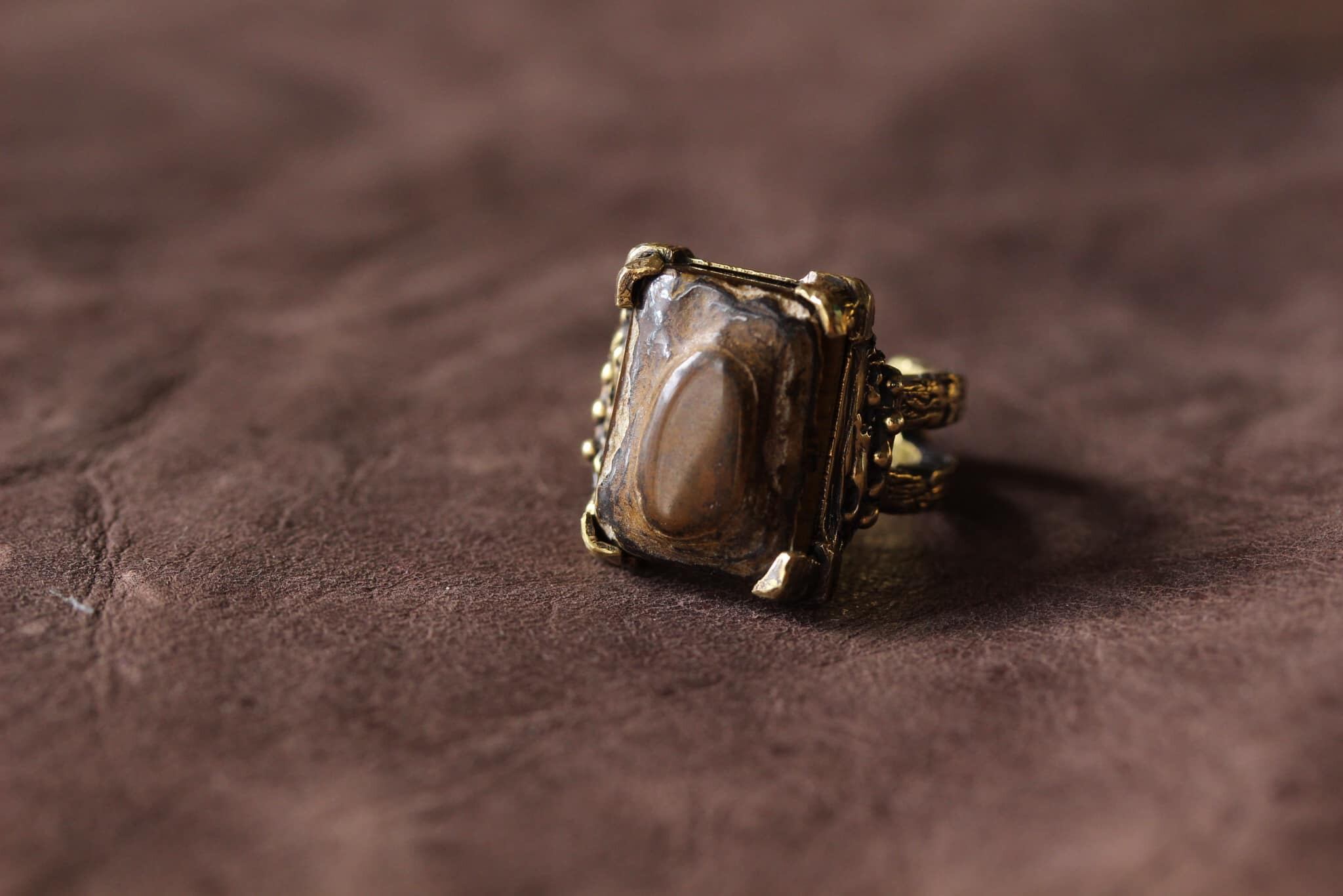 時代を超えて生き抜いていく力を持っているようなリングにしたくて、古代遺跡のイメージで製作しました。