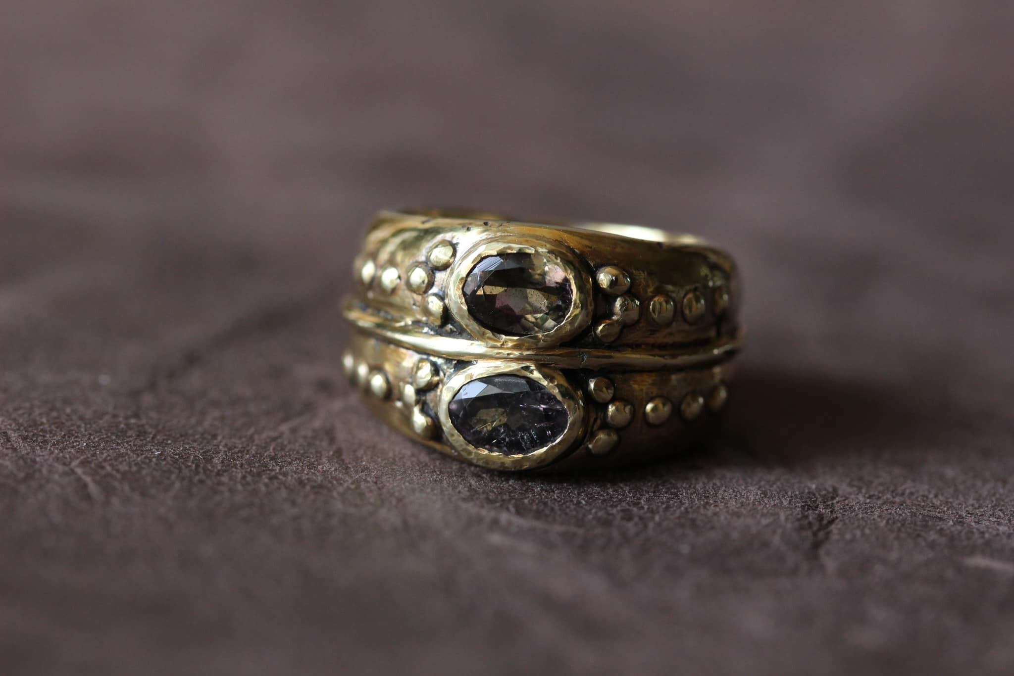 中世の肖像画の貴族が着けてるリングのようなイメージで作りました。