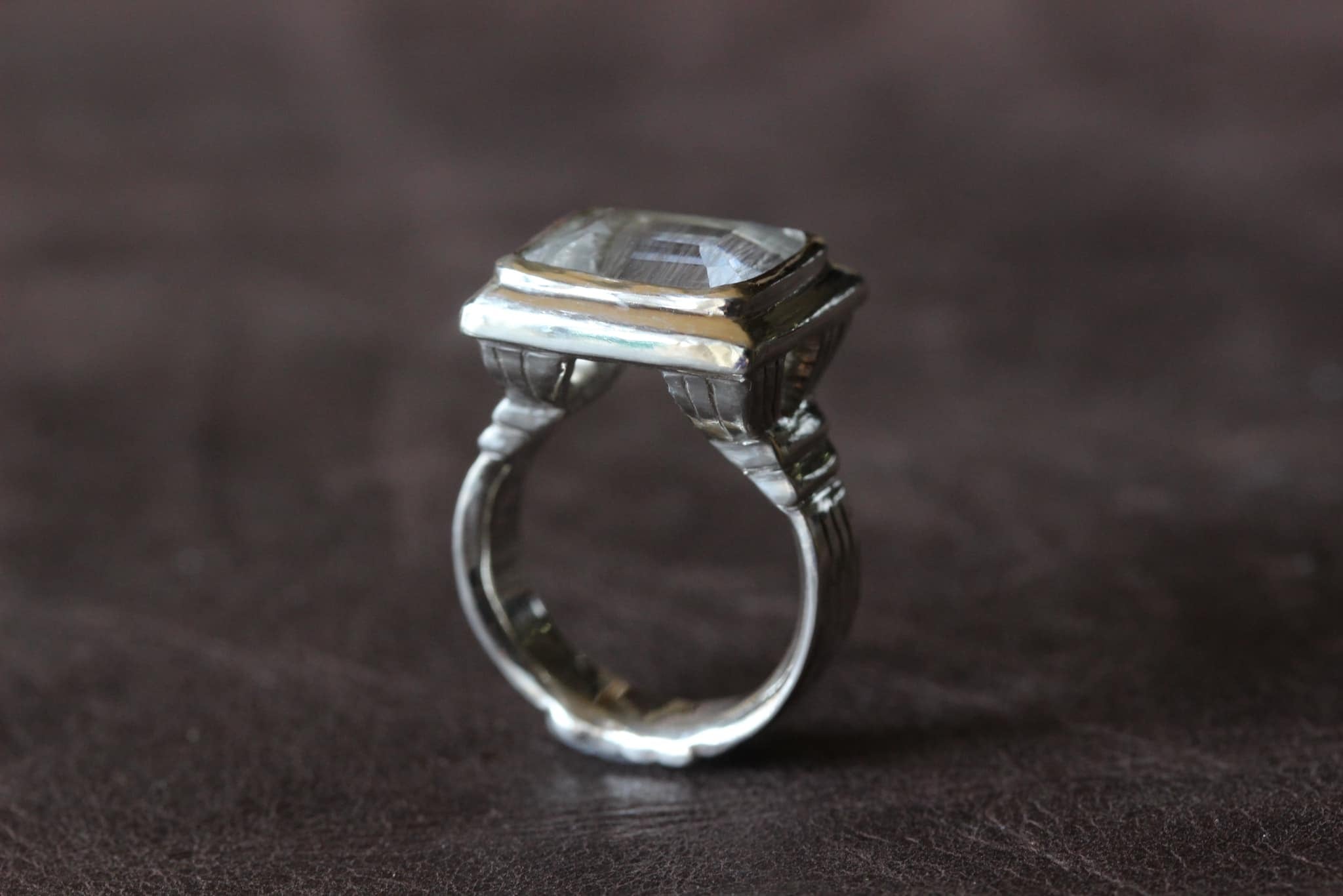 輝く透明感の中に白い光の筋が入っているように見えます。
