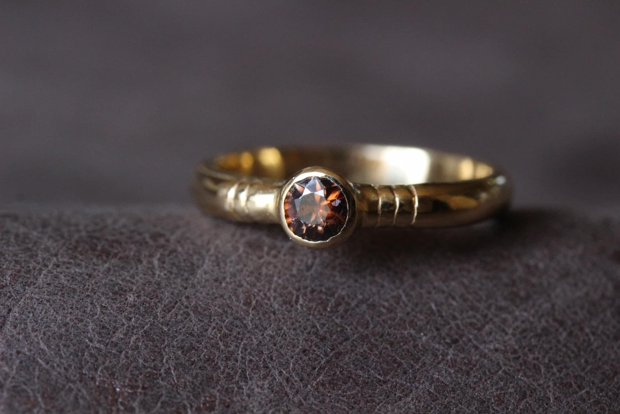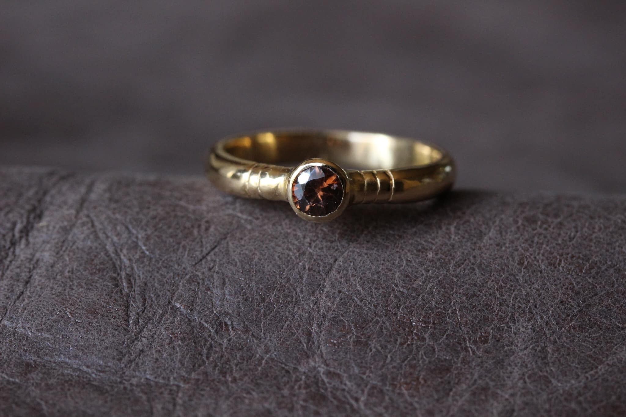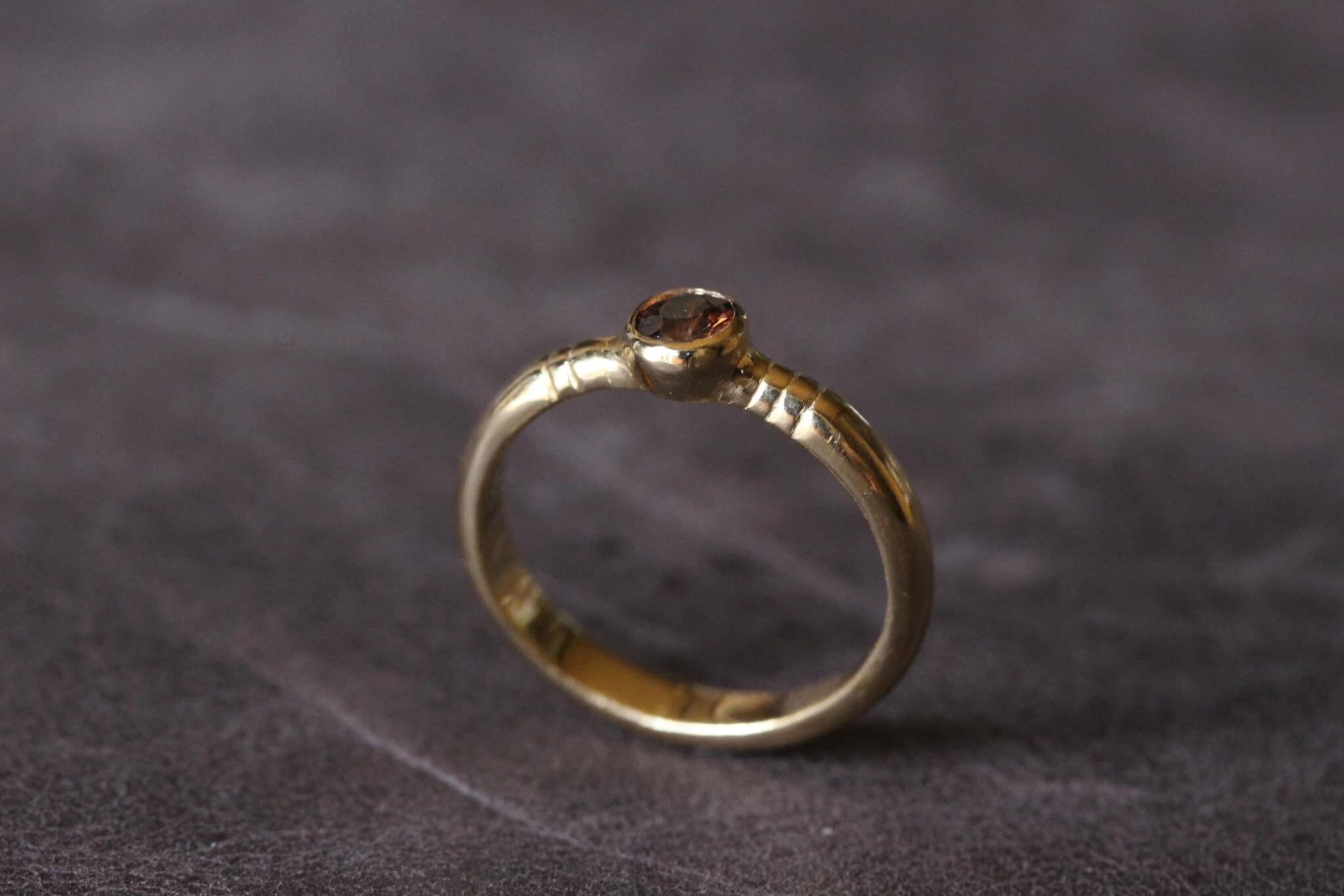 今回はそんなジルコンの輝きが際立つよう、シンプルなリングに仕立てました。